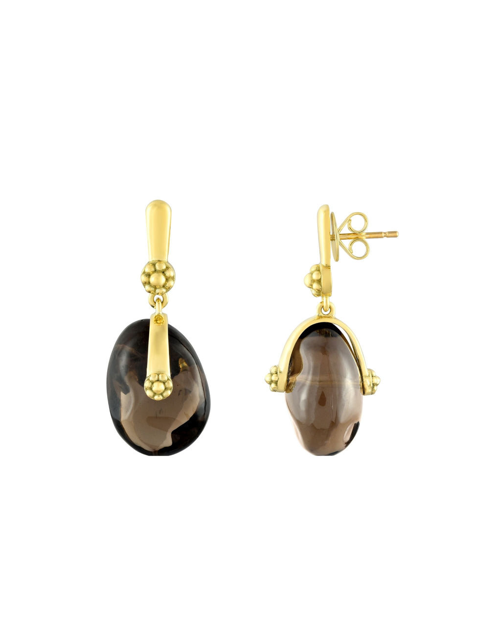 A Pair of 18K Yellow Gold Colors Tumbler Ear Pendants with Smokey Quartz tumbler