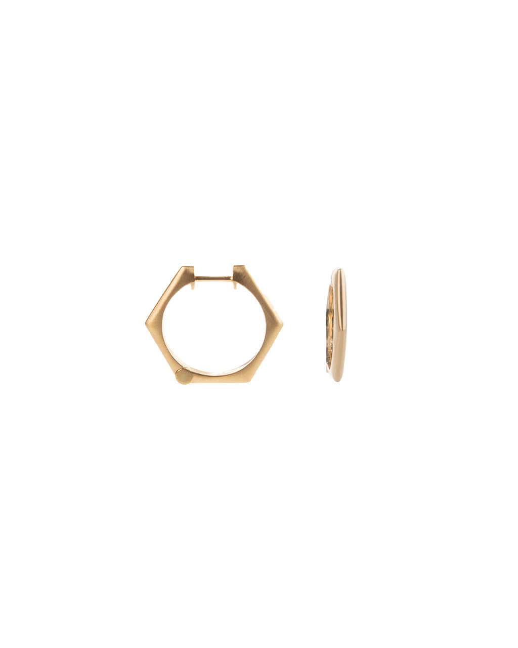 A pair of 18k Yellow Gold Jali Divine Earring hoops of intricate Hexagonal Jali motif.