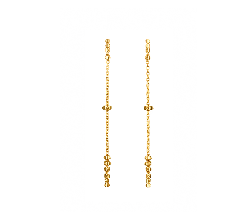 Jali Breeze 18k Yellow Gold Drop Chain Earrings - Maxi with suspended Jali Links, each Link adorned with minimalist granulation