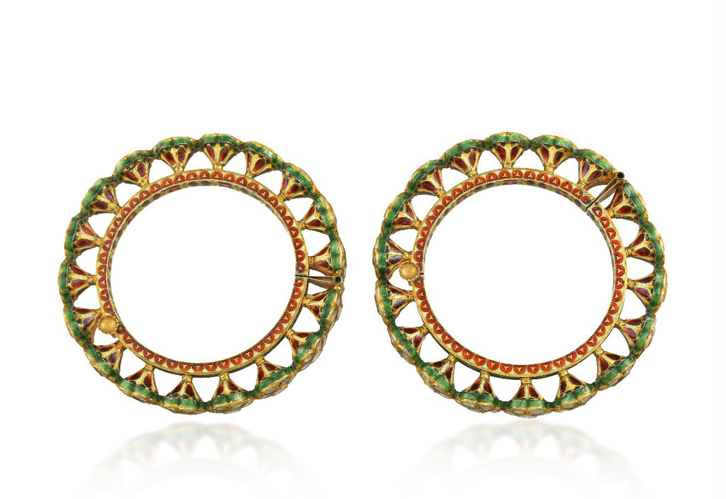 Historical studies of Indian jewelry suggest that such bangles, as well as certain types of bracelets, anklets, and bazu bands, were traditionally worn in pairs. This practice is deeply connected to the Indian concept of cosmic order and balance, which emphasizes symmetry and harmony. Adornments on the right side of the body were mirrored on the left, with one bangle worn on each arm to maintain this balance.