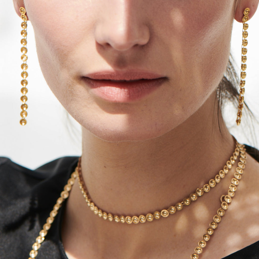Jali is the term for perforated stone or latticed screen, usually with an ornamental pattern constructed through the use of calligraphy and geometry. The designs also have strong and intriguing visual structures while mesmerizing the eye from different angles. This shielding screen inspired us to create jewellery that is strong yet delicate in appearance, inviting to wear and to touch, and to take a closer look!