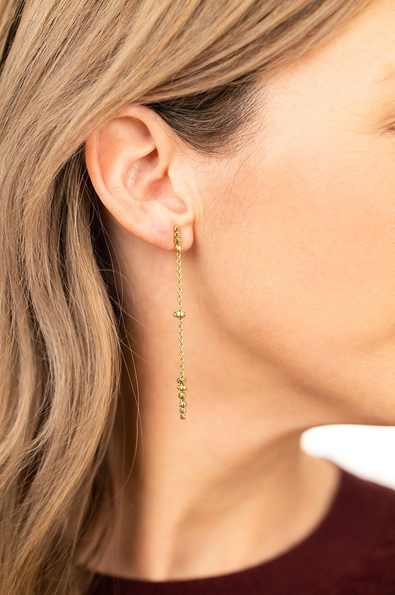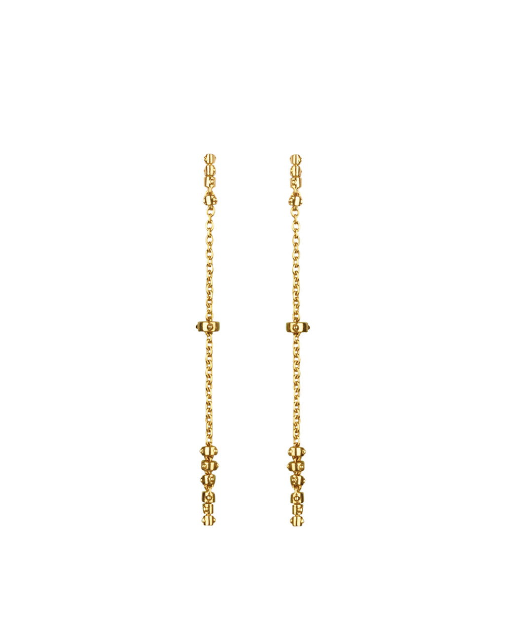 Jali Breeze 18k Yellow Gold Drop Chain Earrings - Maxi with suspended Jali Links, each Link adorned with minimalist granulation