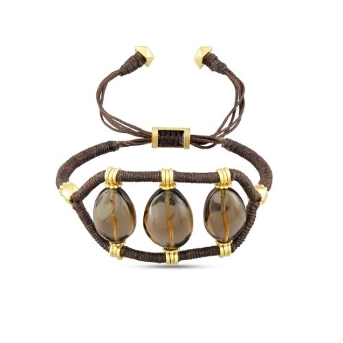 Smokey Quartz Cord Bracelet with 18K Gold.
