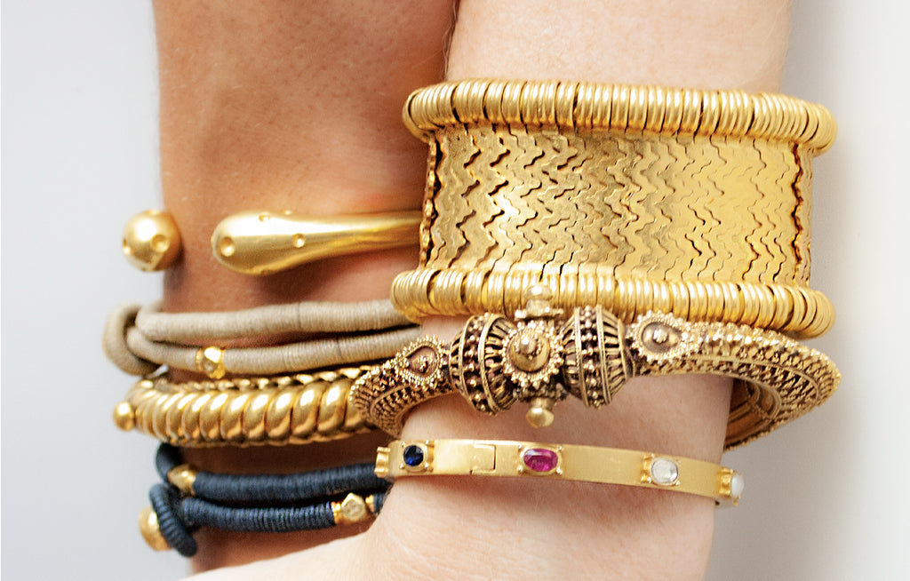 The tradition of wearing Baju bands was inherited by the Mughals from their ancestors, the Timurids. The word Baju band is derived from baju, meaning arm and band, meaning closers, and is worn on the upper arm. The most traditional form of the Baju band was composed of a large stone of exceedingly high quality, for example an emerald, which, in the days of the Mughals, came from Colombia via the Portuguese and flanked by two pearls.